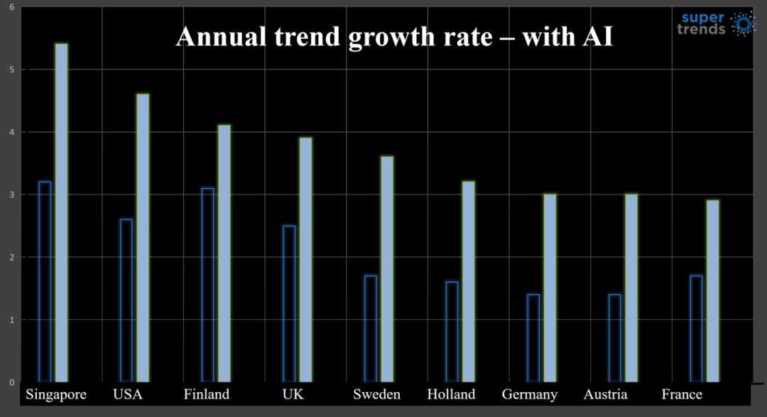 AI的飞速发展将是影响未来经济的一个重要因素,它可以帮助我们更加高效的完成工作。2040年,将会有更多智能机器人涌现,随之带来的劳动力价格下降,将对全球经济有非常深远的影响。